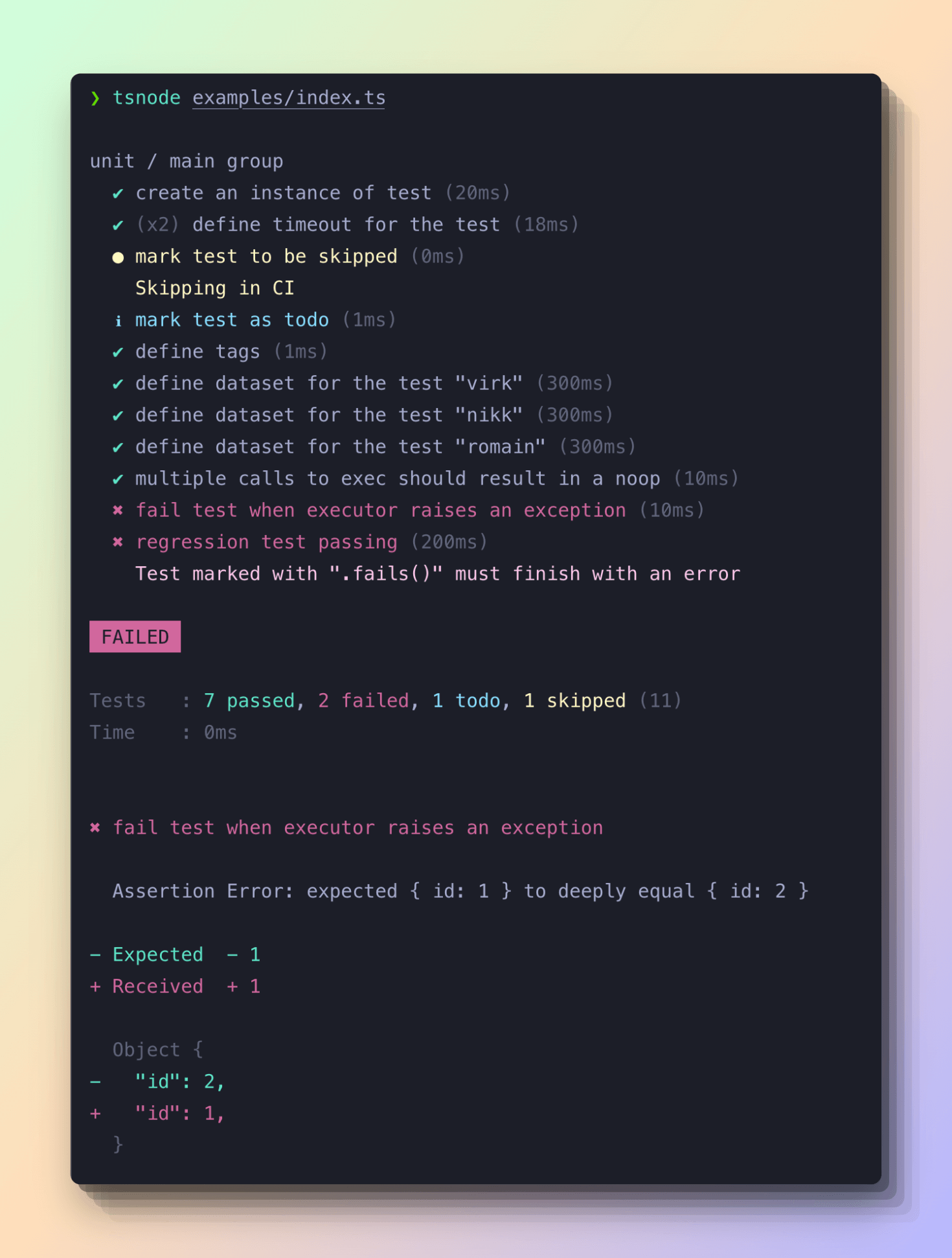 Reporters in Japa are responsible for displaying/saving the progress of tests. The spec reporter displays a detailed report of all the tests in the terminal.